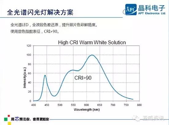 据介绍,使用全光谱LED,可以使全波段色差还原,提升照片色彩鲜艳度。如图使用显色指数表征,CRI>90。