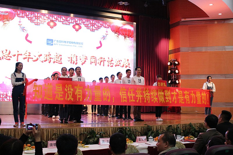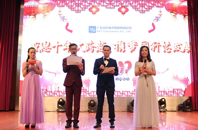 “忆晶科初创,万事多艰辛,十年沉淀,不忘初心,扎扎实实做好产品。”2017年1月18日,晶科电子举行了“感恩十年大跨越,携梦同行芯发展”为主题的年会,我们欢聚一堂,一起感受晶科电子十年风雨同舟。年会以一张张老照片,一个个晶科人的面孔,一翻翻丰富的业绩数据的宣传片拉开序幕,让我们重温了十年来晶科人的拼搏与历程,在每个晶科人心中汹涌澎湃着。