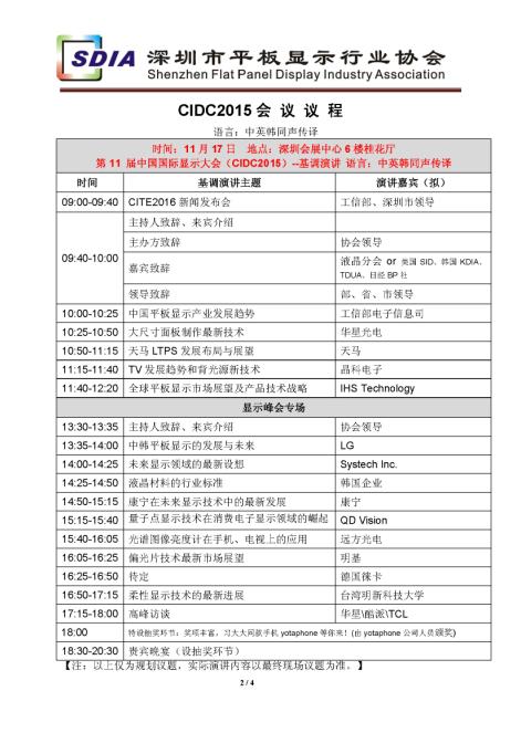 第11届中国国际显示大会(CIDC),在工信部、广东省经信委、深圳市产业主管部门和有关领导的大力支持下,将于11月17日-18日在深圳会展中心隆重举行。本届大会将以“引领平板新发展、开创显示新未来”为主题,全面探讨IN-CELL、AMOLED、柔性显示、LTPS、METAL MESH、等平板显示与触控产业领域的热点技术问题,进行专题报告、高峰访谈。