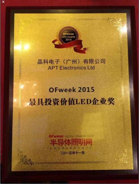 OFweek LED Awards作为业界“奥斯卡奖”,见证了LED行业一项项新技术的突破,一款款出类拨萃产品的诞生,一个个闪烁夺目工程案例的崛起,以及每一位行业人的辛勤付出。其中,晶科电子成功荣获最佳LED照明工程案例奖和最具投资价值奖。