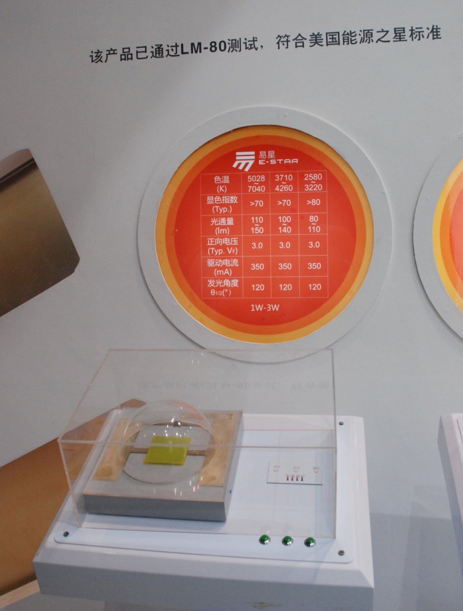 LED战略新兴产业稳步发展,产业集群效应初步形成,晶科电子等一批具备自主研发实力的LED企业经过多年深耕细作,已成为国内领先的研发及生产大功率LED芯片、芯片级光源、模组光源及照明光组件的LED企业。在今年的广州国际照明展上,晶科电子展示了享誉业界的“易”系列产品、RGB产品、COB及光组件产品、EMC贴片等产品,其中包括送审“LED照明标准光组件”的COB白光LED系列的光组件,和刚通过美国“能源之星”(Energy Star)LM-80测试的大功率无金线陶瓷封装产品3535(易星)和低功率PLCC封装产品3014。