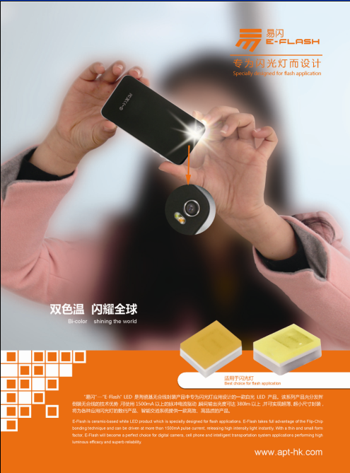 闪光灯作为摄像头一个很重要的部件,起到最重要的作用在于还原拍照色彩。随着手机象素的不断攀升,用户对于闪光灯也有了新的要求。在高亮度闪光灯解决方案中,晶科电子为配合摄像头像素提升,LED闪光灯亮度也不断提升。 晶科电子全新EFG型号,能满足1600万像素拍照要求,1m中心照度达180lx。 为满足真色彩拍照需求,晶科配合自然界暖色调的色彩还原,LED闪光灯补充暖色调。晶科的真色彩闪光灯解决方案即双色方案,顾名思义,暖色调搭配冷色调,使拍照色差还原更真实,白平衡效果更好。