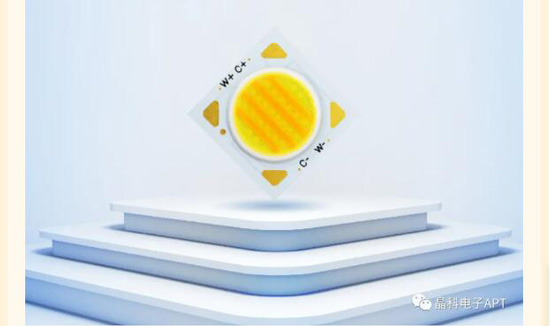 在通用照明领域,晶科电子基于倒装LED多芯片集成封装技术,创新开发出一款高光效、高显色性的高光效可调色COB产品,色温调控范围在2700K-6500K,Ra90,光效150-160lm/W,拥有优秀的光色均匀性和光品质。